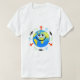Cartoonweltkugelcharakter umgeben durch christliche Symbole - Symbol des Kreuzes, der heiligen Bibel, der Taube und der Fische.