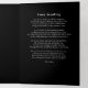 Ehre die Erinnerung an deinen Lieben mit dieser Christlichen Feier des Lebens in Schwarz und Weiß, oder Beerdigung oder Gedenkfeier. Diese leicht und elegant gestaltete Vorlage bietet eine würdige Art, ein Leben in gediegenem Leben zu feiern. Der klassische schwarze Hintergrund mit weißem Text schafft ein zeitloses und respektvolles Aussehen, geeignet für jede Gedenkfeier, Beerdigung oder Feier des Lebens. Dieses dreistufige Programm verfügt über mehrere Panels, mit denen Sie alle wesentlichen Details des Services einschließen können. Auf der Vorderseite wird ein berührendes Foto Ihrer Lieben von ihrem Namen, Geburtsdatum und Durchreisedatum und einer beruhigenden Botschaft begleitet. Im Inneren gibt es Abschnitte, die Sie für eine Nachhilfe, die Reihenfolge des Dienstes und für eine Lektüre oder ein Gedicht verwenden können. Die Innenklappe verfügt über eine 6-Foto-Collage, und die Rückseite kann für Bestätigungen, zusätzliche Notizen, Dankesworte und/oder Empfang-Details verwendet werden. Personalisieren Sie jede Sektion, um eine herzliche Hommage zu schaffen, die den einzigartigen Geist des Verstorbenen widerspiegelt. Dieses dreiseitige Programm ist leicht zu verändern und ist somit eine praktische und schöne Lösung für Ihre Gedenkwünsche.