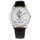 Uhr, Klassische Damenuhr mit schwarzen Lederarmband
