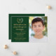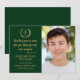 Schicken Sie Ihrer Familie und Ihren Freunden eine einmalige Ankündigung für den Abschluss eines Christlichen Fotos für Ihren besonderen Tag. Diese Designvorlage enthält ein Imitat mit einem goldenen Lorbeerkranz und einem Christlichen Kreuz in der Mitte. Unten ist der Bibelvers, "Gott hat mehr für Sie vor sich als Sie sich vorstellen können. Ephesians 3:20" mit Ihrem Namen, Klassenjahr/Schule/Datum, damit Sie auf grünem Hintergrund personalisieren können. Die Rückseite der Karte ist grün. Designed by artist ©Susan Coffey.
