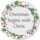 Christliche Weihnachtsschrift Sticker Scripting mit roter, grüner Weihnachtsfeier beginnt mit Christus