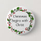 Christliche Weihnachtsschrift Sticker Scripting mit roter, grüner Weihnachtsfeier beginnt mit Christus