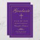 Senden Sie Ihrer Familie und Ihren Freunden eine Christliche Ankündigung mit einem lila Hintergrund mit Imitaten Goldkalligraphie und grenzt an einen dünnen goldenen Rahmen. Personalisieren Sie Ihre Abschluss-Daten. Entworfen von Susan Coffey.