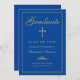 Senden Sie Ihrer Familie und Ihren Freunden eine Christliche Ankündigung mit einem königsblauen Hintergrund mit Imitaten Goldkalligraphie und grenzt an einen dünnen Goldrahmen. Personalisieren Sie Ihre Abschluss-Daten. Entworfen von Susan Coffey.