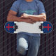 Dieser Skateboard hat die Embleme der christlichen Flagge auf ihm, zweimal.