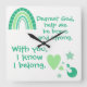Mit Monogramm für Sie, Ihr eigenes Gebet einzufügen, wenn Sie so wählen, quadratische Wanduhr. Dieses niedliche Boho Thema mit einem grünen Regenbogen und Galaxie, und grüner Text auf einem weißen Hintergrund, Staaten, Lieber Gott, helfen mir, mutig und stark zu sein. Mit dir, ich weiß, dass ich gehöre.
