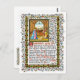 Vintage Malerei in mehreren Farben. Vintages mittelalterliches Dekorgemälde mit Gebet, verzierte, dekorative Blattlinie in Rot, Grün und Gold.