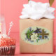 Vintages Gemälde mit einem christlichen, goldfarbenen Kreuz mit weißem Rand und wunderschöner Blume und Knospen mit grünen Blätter davor, und ein herrliches Gewirr violetter Blumen hinter dem Kreuz. Vintage Aquarellmalerei in Gold und Grün. Aquarellmalerei in Gold und Grüntöne.