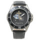 Herrenuhr aus Edelstahl mit schwarzem Lederarmband