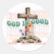 Religiöser/Christlicher Aufkleber mit Kreuz und Text: "Gott ist die ganze Zeit gut."