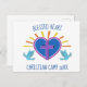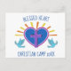 Diese Christliche Sommercamp-Postkarte bietet eine hübsche Farbvielfalt für einen religiösen Rückzug. Passen Sie über dem niedlichen lila Kreuz und Herzsonnenaufgang auf. Die wunderschönen blauen Tauben unter den gelben und orangefarbenen Strahlen der Sonne.