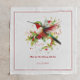 Genießen Sie die zauberhafte Servietten-Optik der Feiertage mit einem wunderschönen Weihnachtsmotiv in Aquarellen, umgeben von einem winterlichen Blume-Bouquet auf weißem Hintergrund. Personalisierbare rote Typografie.