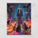 Christmas and Halloween Woman Bats Cats Postkarte