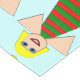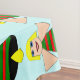 Dieses phantastische Tischdecken ist mit einem hübschen Weihnachtsgel mit blonden Haaren, blauen Augen und einem großen Lächeln ausgestattet. Ihr Körper ist eine festlich grüne und rote Glocke mit einem gelben Klapper am unteren Ende.