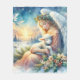 This enchanting scene captures a tender Christmas angel cradling a peaceful lamb against a glowing winter sunrise. Surrounded by a snowy forest, evergreen branches, and delicate holly adorned with berries and poinsettias, the image evokes a deep sense of serenity and spiritual warmth. Soft pastel tones blend with radiant light and starry skies, highlighting the angel's flowing gown, feathered wings, and gentle expression. White doves soar overhead while distant lambs graze across a frost-kissed field, enriching the overall sense of calm and holiday reverence. Ideal for evoking feelings of divine comfort and the quiet magic of a spiritual Christmas, this ethereal winter scene blends elements of peaceful nativity and holiday tranquility. Designed to inspire and uplift, this composition brings a timeless message of peace, innocence, and grace. AI generated artwork.