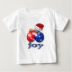 Ein Weihnachtsbaby in roter Strumpf-Kappe spielt auf ein paar Urlaubsornamenten und Text liest "Joy" auf personalisierbaren Taschen, T - Shirt und anderen Gegenständen.