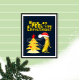 Funny yellow banana with Christmas tree on dark blue background
