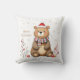 "This adorable illustration features a cheerful brown teddy bear wearing a festive red and white Santa hat and a cozy striped scarf. The bear has rosy cheeks and a soft, plush look, making it incredibly inviting. This charming graphic is perfect for children's Christmas apparel, holiday cards, ornaments, cozy blankets, or any product celebrating the sweet and simple joys of the holiday season."