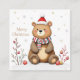 "This adorable illustration features a cheerful brown teddy bear wearing a festive red and white Santa hat and a cozy striped scarf. The bear has rosy cheeks and a soft, plush look, making it incredibly inviting. This charming graphic is perfect for children's Christmas apparel, holiday cards, ornaments, cozy blankets, or any product celebrating the sweet and simple joys of the holiday season."