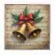 Christmas Bells with red decorative ribbon on a music sheet background.