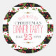 Christmas Berry Wreath Black & White Streifen Runder Aufkleber