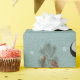 Vintage Vogelbilder auf aquamarinem Hintergrund mit winzigen Schneeflocken. Kardinal, Nacktkakteen und Kichadagebäcke mit immergrünen Zweigen. Ideal für die Winterferien.