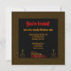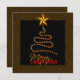 Abstrakter Weihnachtsbaum - ABCT100 © Sunny Mars Designs. Platz personalisierbare schwarz-goldene Weihnachtseinladungen oder lädt mit einem abstrakten Weihnachtsbaum aus Sternen und einem großen Stern an der Spitze ein, mit den Worten "Frohe Weihnachten" darunter.
