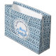 Maßgeschneiderte Frohe Weihnachten große Geschenktasche in blau. Ihr Name und Ihre Botschaft auf dem schönen Lapplandmuster in blau mit transparentem Hintergrund (hier blass blauer Hintergrund). Sie können die Hintergrundfarbe und den Text (Schriftart, Größe, Farbe und Position) ganz einfach ändern, indem Sie auf die Schaltfläche Anpassen klicken..Andere Größen und Modelle sind verfügbar. Personalisierte Weihnachtsartikel, Papierservietten, Papierteller und mehr...