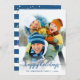 Diese festliche Urlaubskarte bietet Ihnen ein beliebtes Foto mit weißem Ober-Overlay und Skripttext "Happy Ferien" mit Ihrem Familiennamen und dem untersten Jahr. Zurück sind blaue Pinselstreifen und goldene Konfetti. Einfach anpassen, indem Sie auf "Personalisieren" klicken. Ideal, um Freunden und der Familie einen Feiertagsjubiläum zu schenken.