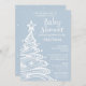 Weihnachtsbaum Boho blauer Baby-Boy-Duscheinladung mit einer niedlich-whimsical Spaß-Junge-Dusche für eine festliche Holiday-Babydusche.