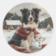 Christmas Border Collie Dog Snowman Runder Aufkleber