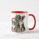 Niedliche Darstellung von Boston Terrier Hunden, die zu Weihnachten verkleidet sind. Ideal für Hundeliebhaber und Hundeeltern während der Ferienzeit.