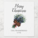 Whimsikales Weihnachtsweinetikett, das das Winterstrauß von Kiefernzapfen, Kiefernbäumen und blauen Beeren illustriert.