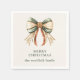 Christmas Bow Personalized Merry Christmas Paper Napkins... Colorful Christmas bow in shades of red, green and gold for your Christmas holiday party paper napkins. Coordinates with our rustic stripes paper plates. The elegant Christmas bow is featured above example text for your holiday greeting and individual or family name. All text can be easily revised on the personalization template.