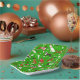 Niedliche Weihnachtshunde in festlichen Urlaubssoutien. Boxer mit vielen Fellfarben tragen Weihnachtsmannmützen, Geweih, Pullover mit verstreuten Ziergegenständen.