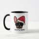 Diese niedliche festliche Kaffee-Tasse ist ein hervorragendes Weihnachtsgeschenk für französische Bulldoggen-Fans. Die Einrichtung besteht aus einem braunen und blassfarbenen französischen Bulldoggen, der eine rote Weihnachtsmannmütze trägt und eine Sonnenbrille mit einem Aviator trägt.