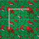 Fun Weihnachtsstoff aus niedlichen Kawaii-Rosensprossen auf rotem Hintergrund