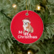 Verbringen Sie Feiertagjubeln mit unserem zauberhaften Bull Hund in einer Weihnachtsmannmütze Weihnachtsschmuck! Zeitlos Weihnachten rot und weiß. Fügen Sie Ihren eigenen Namen hinzu und lassen Sie sich von Ihren Feierlichkeiten abheben!