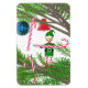 Magnet mit meinem Bild von einem niedlichen kleinen Elf in rot und grün gekleidet, der Bonbons auf einen Weihnachtsbaum legt.