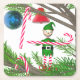 Helle und fröhliche Untersetzer mit meinen Computergrafiken eines kleinen Elfs, der einen Weihnachtsbaum mit Bonbons schmückt.