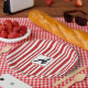 Die Streifen sind rot-weiß, mit Süßkartoffeln.