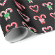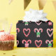 Dieses niedliche Verpackungspapier ist vielseitig und kann für Geschenke oder Kunst- und Handwerksprojekte verwendet werden. Das Design zeichnet sich durch festlich gestreifte Süßigkeiten auf einem schwarzen Hintergrund aus.