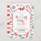 Sweet One! Christmas Candy Sweet One first birthday party invitation with candy canes, jelly beans and other candy.