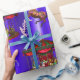 A colorful Christmas wrapping paper featuring a vintage carousel and carousel horses to add a retro touch and a carnival atmosphere to your Christmas gift wrapping and gifts this holiday season. The design features a pattern of carousels in green and pink complete with colorful wooden horses, surrounded by painted horses of brown and white prancing around them, with trails of pink Christmas stars over the gradient blue background