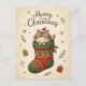 Christmas Cat in Stocking Postkarte
