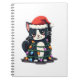 Christmas Cat Tuxedo black cat xmas lights kitty c Notizblock