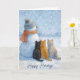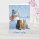 Christmas Cats Sitting With a Snowman In a Field Karte