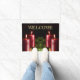 Christmas Celebration Red Candles Green Leaves Doormat. Unique, beautiful, stylish design. Easy to be personalized. Font style, size and colors can be changed. Matching items are available.
