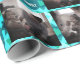 Umhüllungspapier mit einem Muster von drei Fotos, die Sie anpassen können, zusammen mit einem sehr eleganten türkisfarbenen Hintergrund. Der mandalaartige Druck mit sechseckigen Formen macht das Papier anders. Außerdem können Sie angeben, von wem das Geschenk stammt, ob es persönlich ist oder von Ihrer Familie verschickt wird. Die Vorlage ist im Set, um die Fotos in runder Form anzuzeigen.