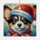 Christmas Corgi Dog Welpe mit Weihnachtsmannmütze Keramikornament